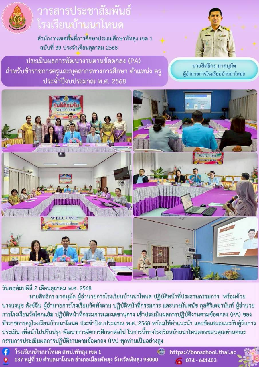 ประเมินผลการพัฒนางานตามข้อตกลง (PA ) สำหรับข้าราชการครูและบุคลากรทางการศึกษา
