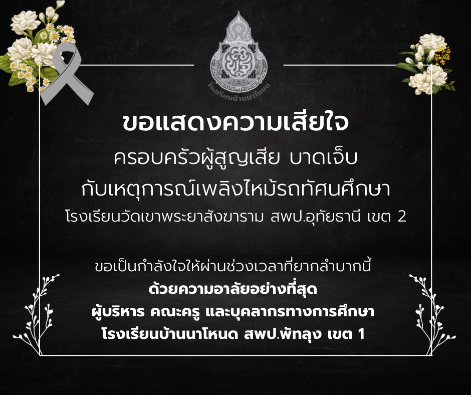 โรงเรียนบ้านนาโหนดขอแสดงความเสียใจกับเหตุการณ์ไฟไหม้รถบัสทัศนศึกษา โรงเรียนวัดเขาพระยาสังฆาราม