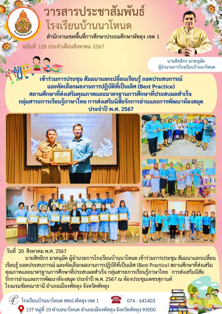 เข้าร่วมประชุม แลกเปลี่ยน เรียนรู้ ถอดประสบการณ์ สถานศึกษาที่ส่งเสริมนิสัยรักการอ่าน ประจำปี 2567