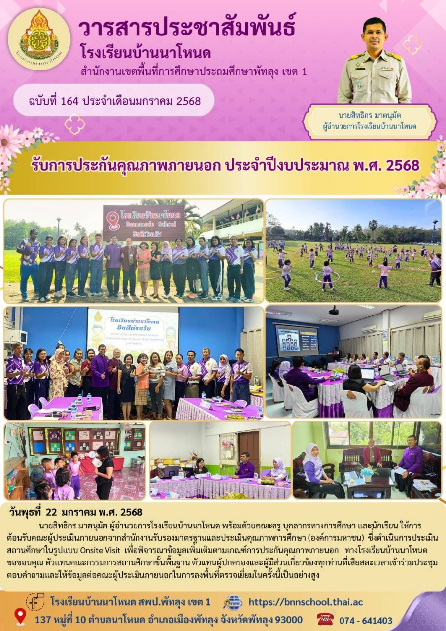 โรงเรียนบ้านนาโหนดรับการประกันคุณภาพภายนอก ประจำปีงบประมาณ พ.ศ. 2568 จาก สมศ.