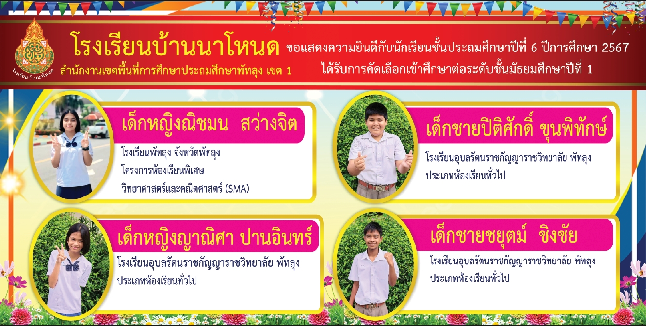 โรงเรียนบ้านนาโหนดขอแสดงความยินดีกับนักเรียนชั้นประถมศึกษาปีที่ 6 ปีการศึกษา 2567